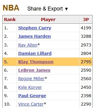 🎯克莱命中生涯第2800记三分 历史第5位&距离超越利拉德还差5记